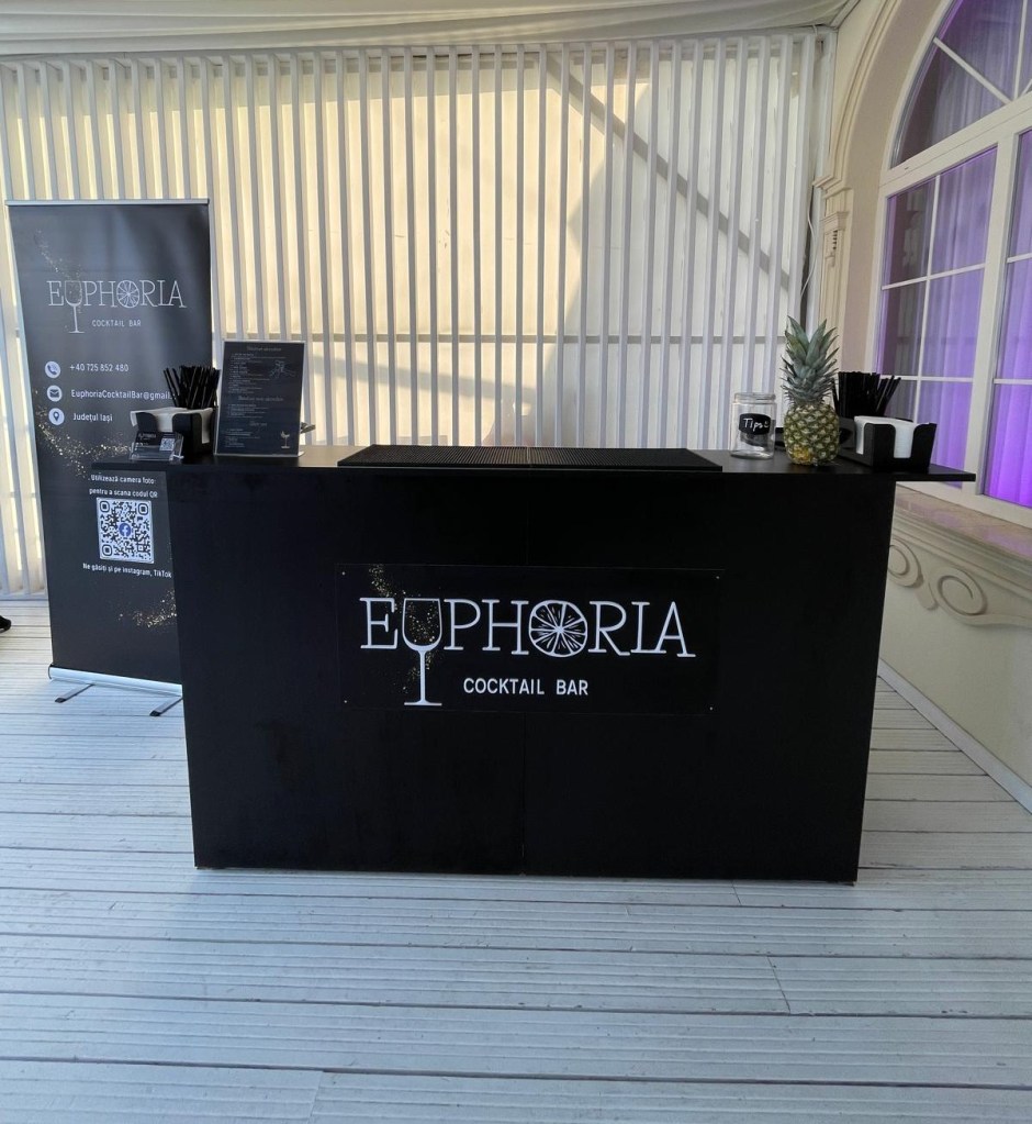 Noi aducem băutura și paharele, tu aduci doar pofta de distracție. Vino să descoperi universul nostru aromat la Euphoria Cocktail Bar! 🎉