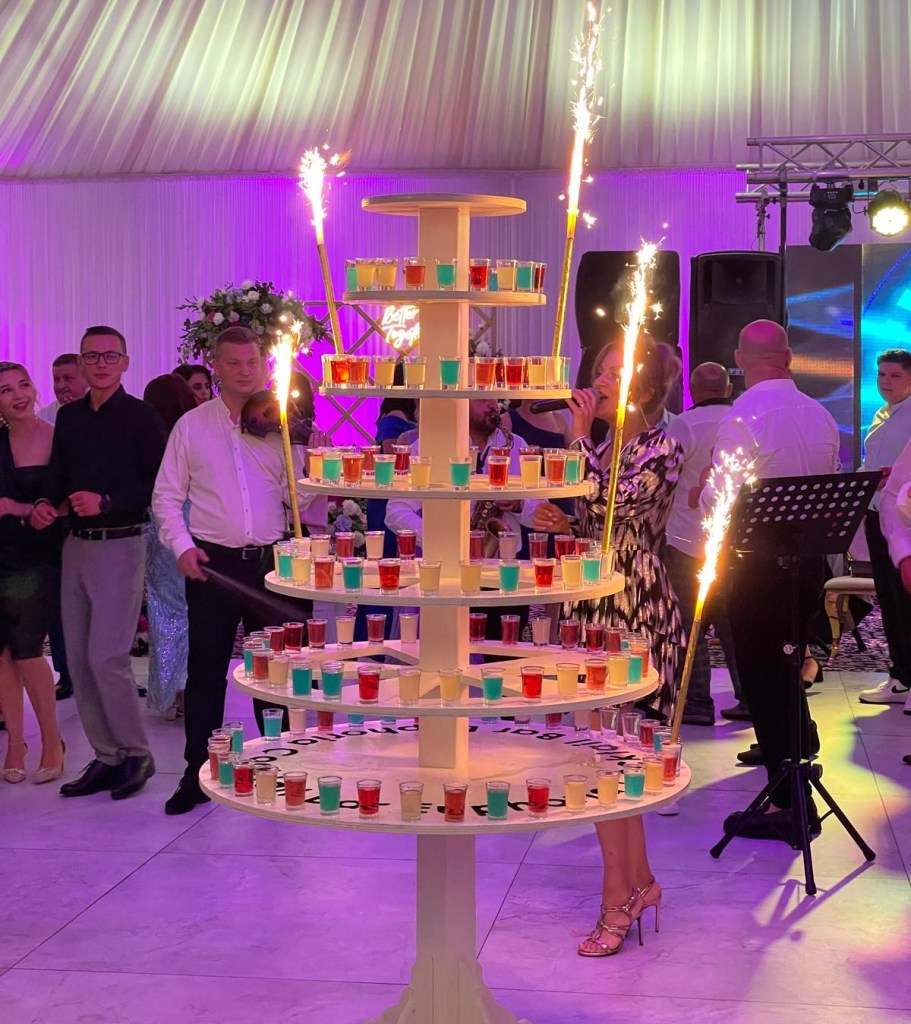 Tortul de shoturi conține 160 de delicii alcoolice variate, perfecte pentru orice festivitate. Fiecare strat aduce o aromă distinctă, creând o experiență de degustare memorabilă pentru petrecăreți. Un festin gustos și original pentru orice ocazie specială!
